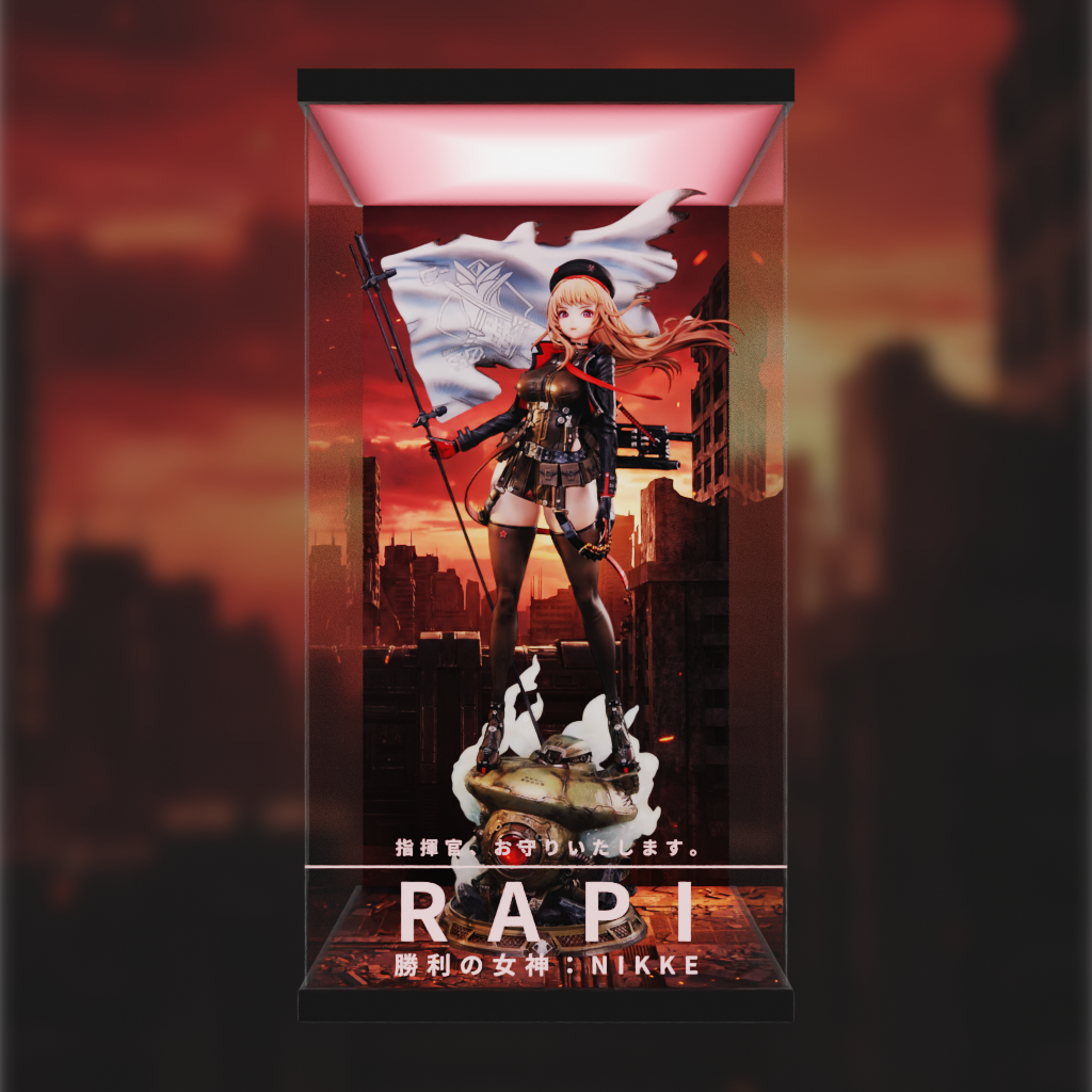 為 TriEagle 1比4 拉毗Rapi 勝利女神 妮姬NIKKE 手辦設計的展示盒,主題背景,高清透亮面板,提升展品場景氛圍,同時免受塵封困擾